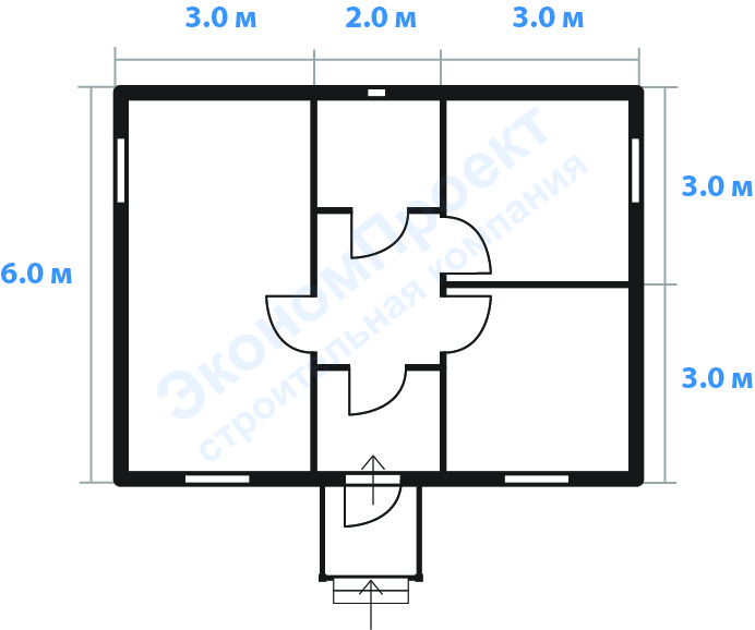 | Двери: | (Акция!) входная металлическая в подарок, филенчатые, петли "бабочки", наличники | |